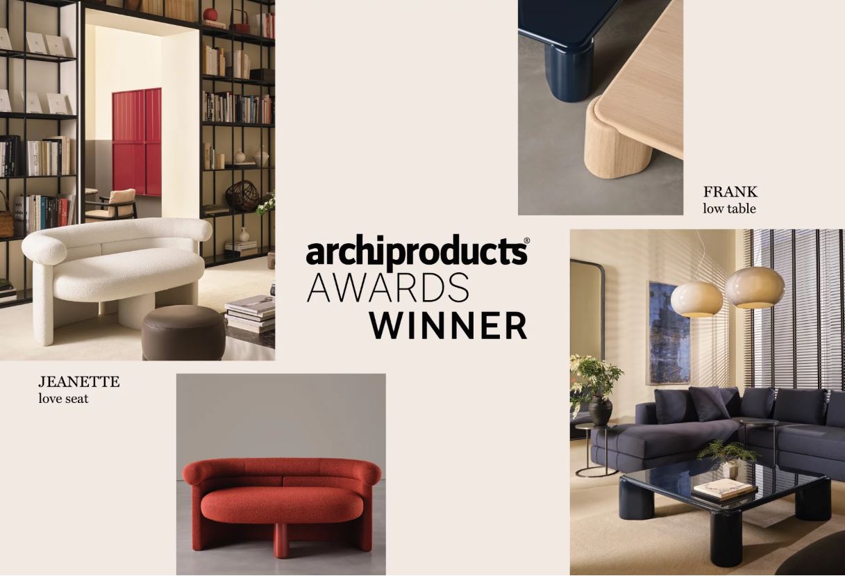Meridiani continues to stand out “twice over” at the Archiproducts Design Awards. After 2024, which saw the Vetra storage unit and the Vincent Open Air sofa being recognized, this year it is the Jeanette loveseat and the Frank low table (2025 collection), both designed by Andrea Parisio, that take the prize in the Contract and Furniture categories, respectively.