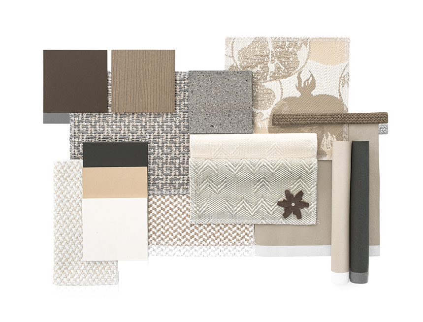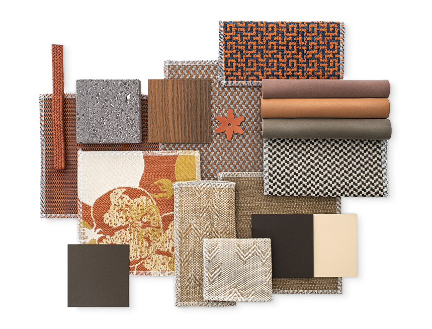 In contrast with the lighter tones, brick emerges, inspired by Cocciopesto, a material rooted in the Italian building tradition.