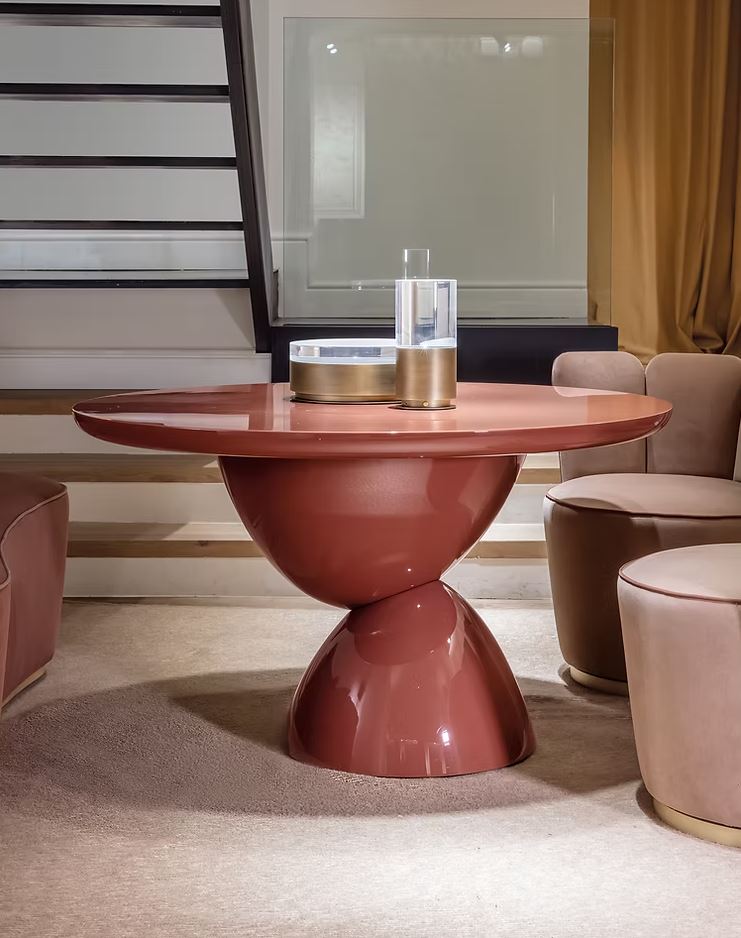 Enriching the Adri family of coffee tables, the Adri T table takes shape, characterised by a monolithic and sculptural central base, on which thick tops rest.
