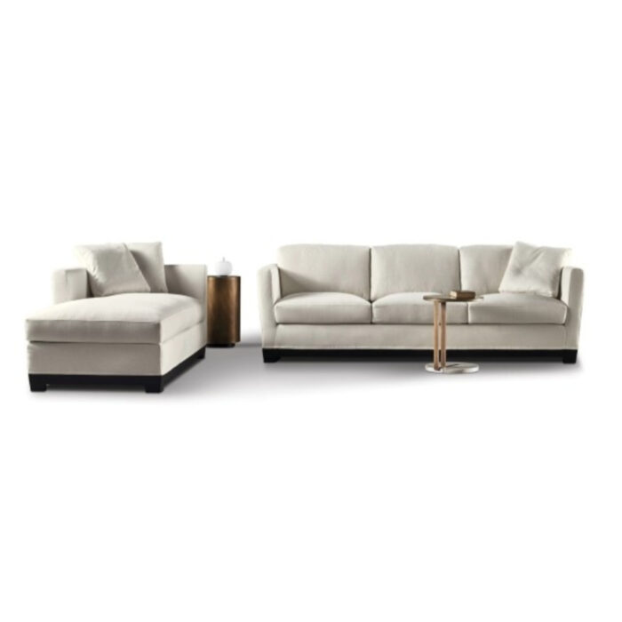 Sofas, meridienne and pouf that evoke Art Déco suggestions. A sophisticated collection, which offers a traditional comfortable seating yet limited depth.