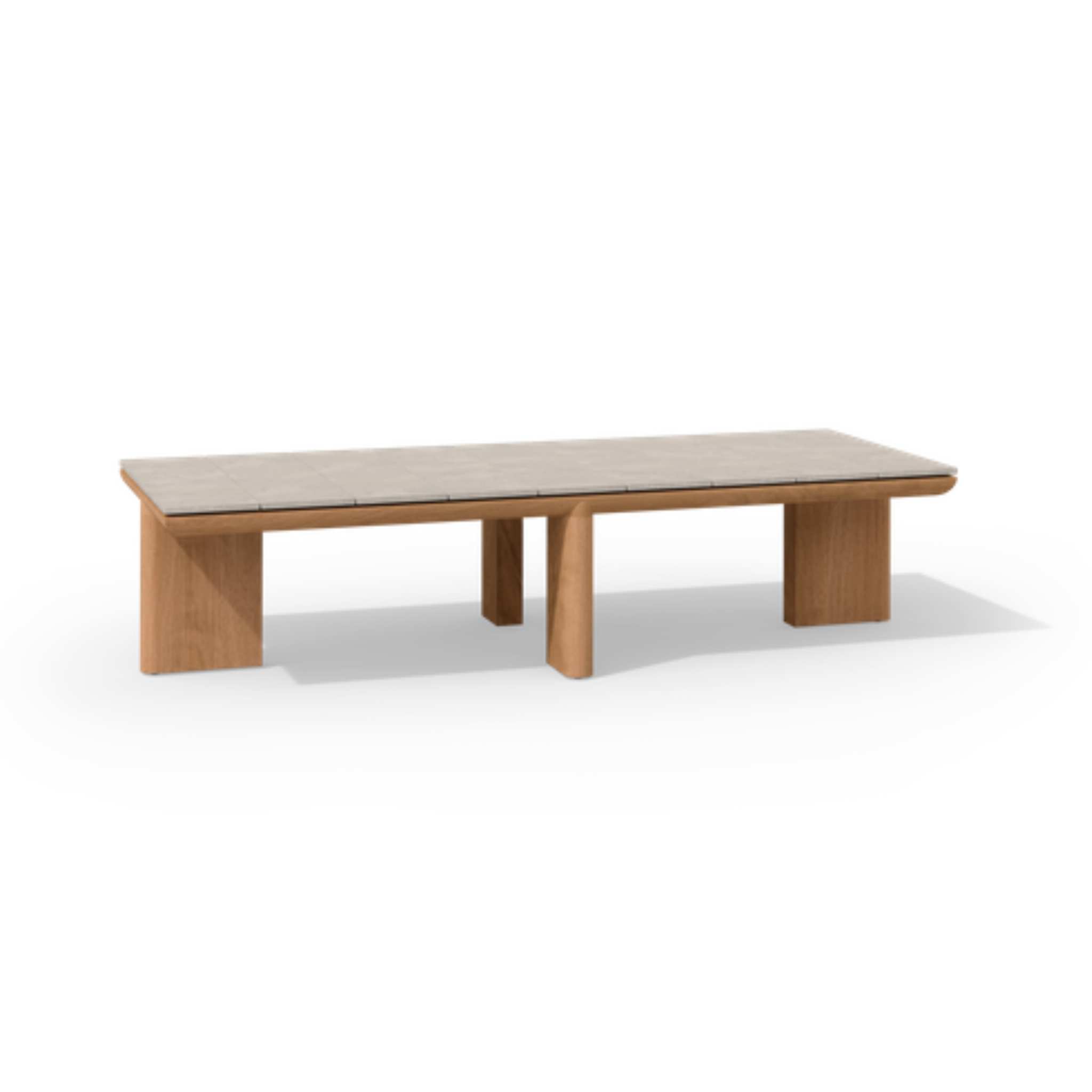 Completing its new ensemble of sofas and daybeds, AMANU introduces a selection of round and rectangular coffee tables, each imbued with the distinctive aesthetic of the collection’s dining table. The frame, with its elegantly positioned legs, is crafted from solid teak, sourced from the finest plantation wood in East Java, supporting an elegant ceramic tabletop. The rounded edges of both the teak profile and ceramic top convey a soft, harmonious look that stands out for its simplicity.