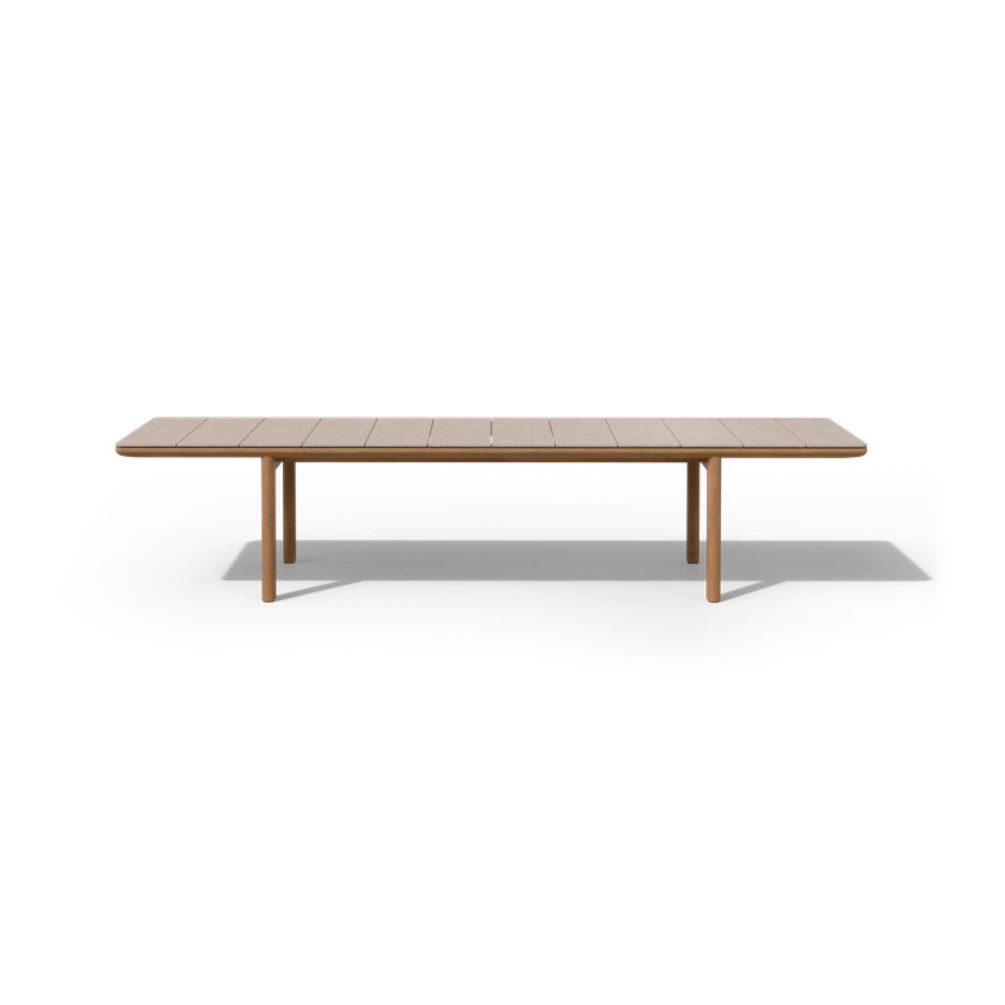 Exploring the organic beauty and durability of teak, Yabu Pushelberg crafted a dining table that exudes the notion of togetherness. The broad, ceramic tiles seem to float on the discreet, yet sturdy teak frame, creating a remarkable lightness. The rounded edges of both the teak profiles and the outer ceramic tiles, convey a soft and harmonious look that stands out by its simplicity.