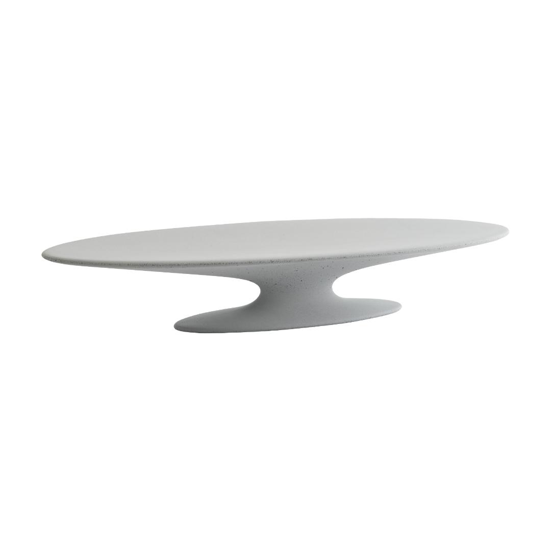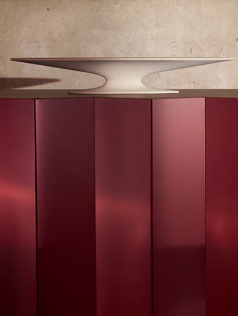 Ara Fenice faithfully reproduces the shape of the Fenice table, but reduces its dimensions to fit the function of a centrepiece. This change of scale does not alter the essence and founding principles of the original work. Like the Fenice table, Ara Fenice is made of concrete and aggregates, maintaining the material and conceptual integrity of Bottoni’s design.
