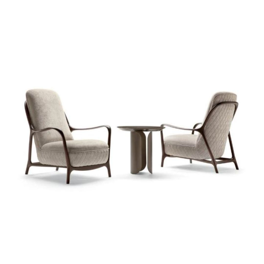 Light lines and curving edges are brought together in the Callas armchair, an elegant solution with a solid wood frame – completely engineered and refined by hand – that evokes the refined simplicity of Scandinavian design. The upholstery can be decorated with diamond-shaped quilting on the back.
