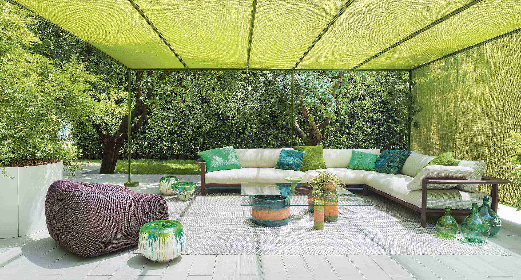 Series composed of majolica side tables and by side tables with glass top and base consisting of independent elements made of majolica.