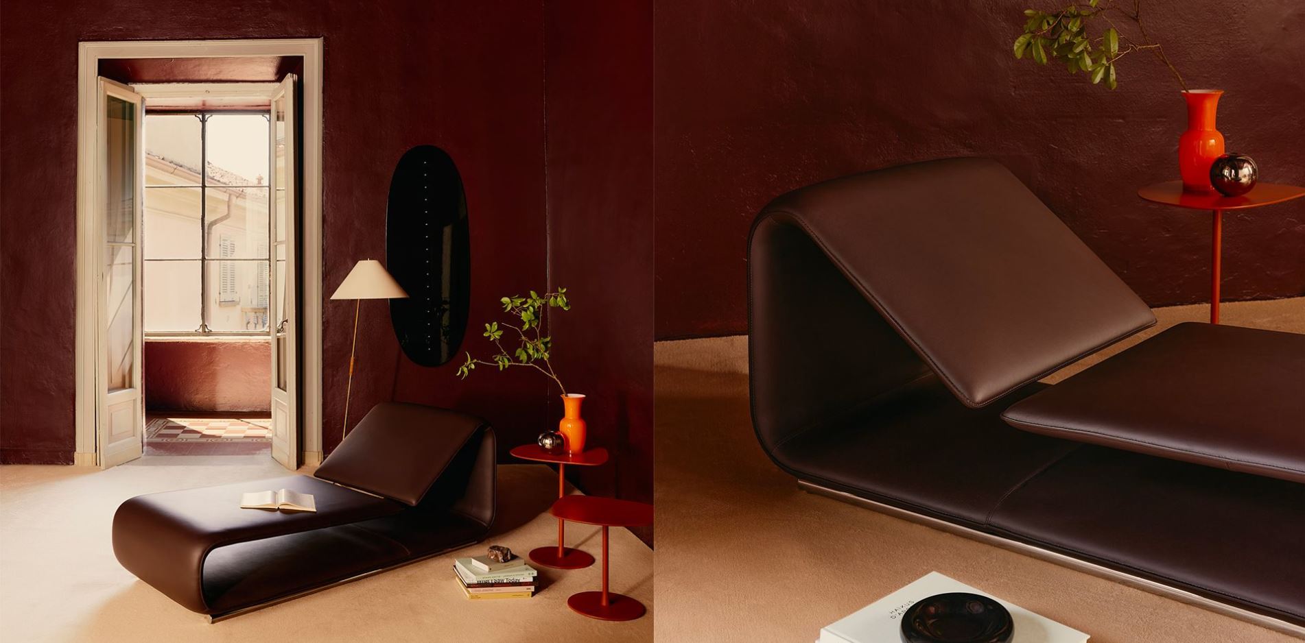 The chaise longue converges on a single guiding principle: designing the essential. An upholstered piece designed to last over time thanks to the straps that weave into a sturdy internal frame providing the necessary support, while the elasticity ensures maximum comfort. The tapered section and the thin stitching along the edge highlight the extreme lightness of the forms, transforming each piece into a sculpture adaptable to any environment. True to its tradition, Desalto has skillfully integrated metal with expert craftsmanship: two tubes running the entire length serve as a base, giving the seats the illusion of floating in space, much like a graphic line brought to life.