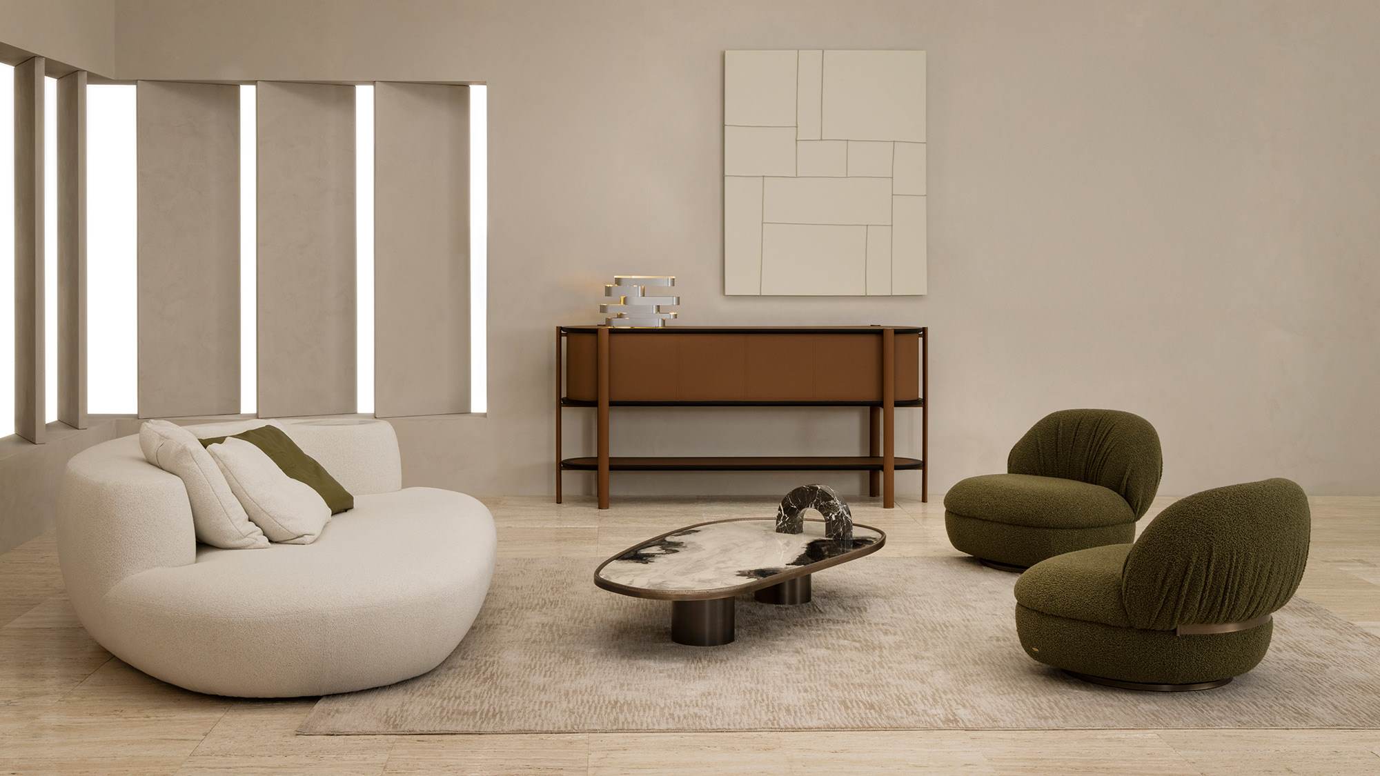 The Coquette collection stands out for its refined aesthetic and meticulous attention to detail, offering a range of furniture pieces — including sideboard and bookcase — designed for contemporary interiors where function and style coexist seamlessly.