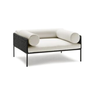 The not removable upholstery is in fabric or leather and is proposed in one colour or in two colours with the external side in leather and the internal one in fabric or leather.