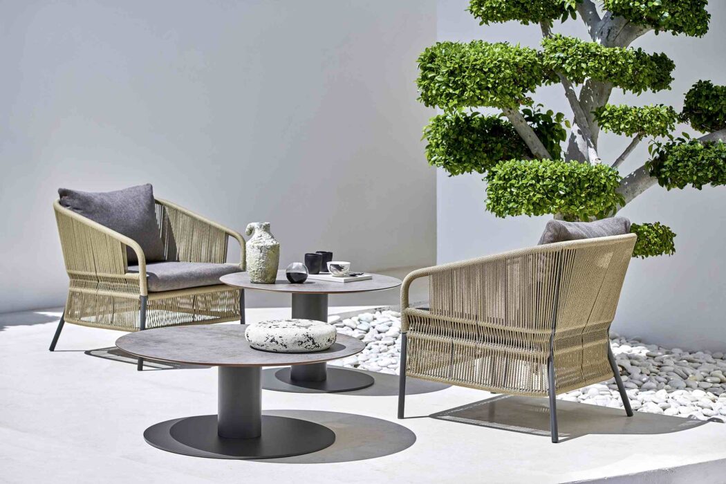 The lounge armchair of the Cricket collection stands out for the hand weaving of the rope backrest. Its twisting is a precious element of craftsmanship, a refined detail that enhances its shape and design.