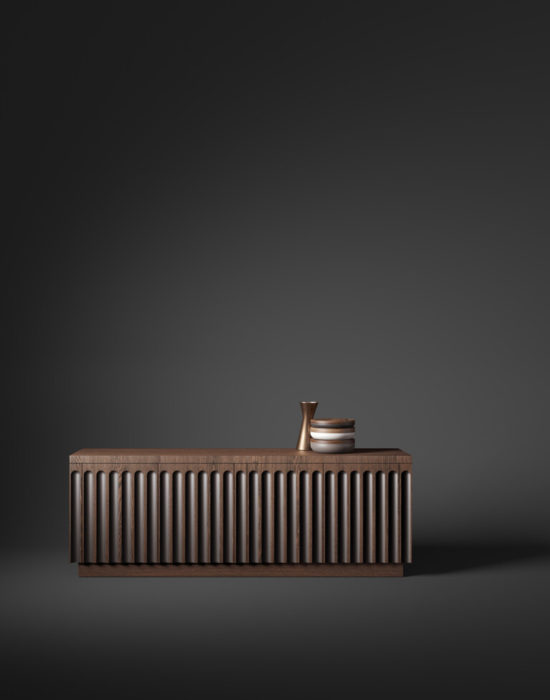 An extremely versatile piece of furniture in terms of compositions and finishes: the wooden version with lacquered grooves gives a reading closer to the classic piece of furniture, while the fully lacquered versions, in sophisticated and current colour variants, make it a modern and innovative container in its linear simplicity.
