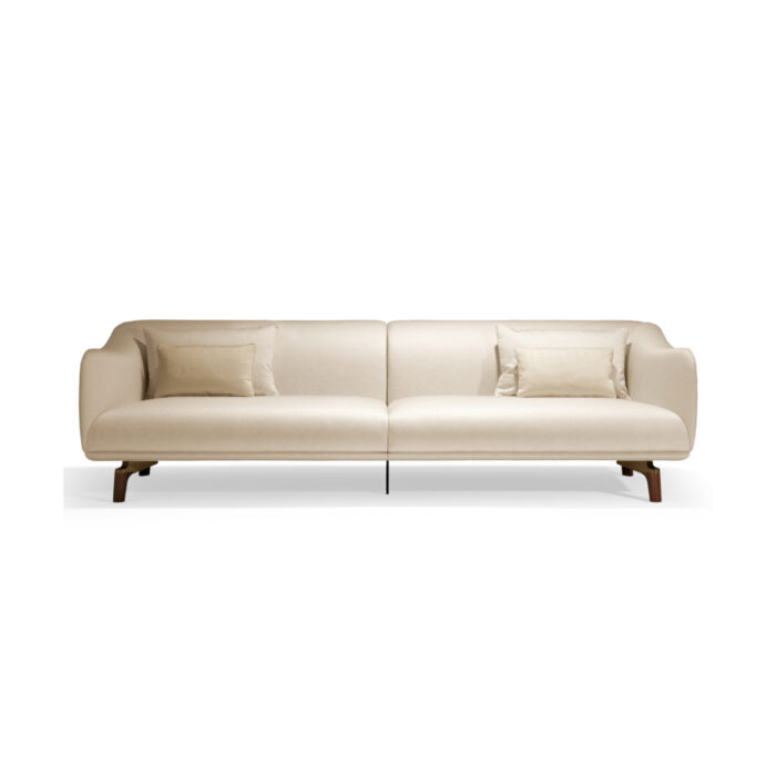 Details are the main feature of the formal aspect of this piece, which breaks away from minimalist aesthetics: a rigid body with steel profiles and flexible polyurethane, its sinuous shape enveloping the goose down filled cushions, offered in two sizes to arrange on the seat in an overlapping pattern.