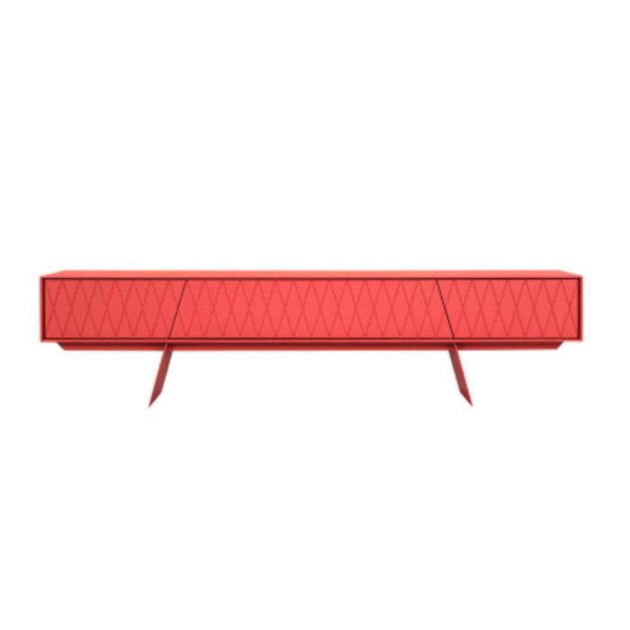 TV Unit in various sizes. It has a diagonal pattern on the fronts and a metal base that follows this pattern.