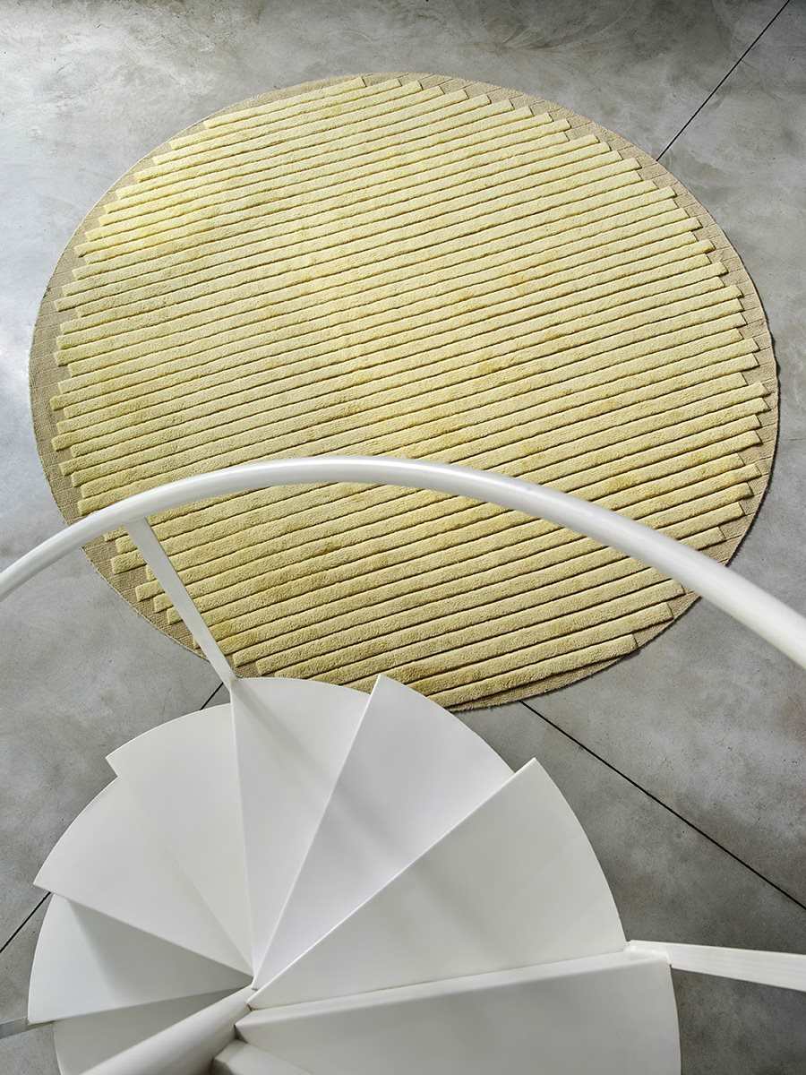 Carpet. Hand-knotted carpet, fibrous composition 90% wool, 10% cotton. Thickness 15 mm, weight 3.5 Kg/sqm. Colours: wax, hemp, algae, amaranth and blue.