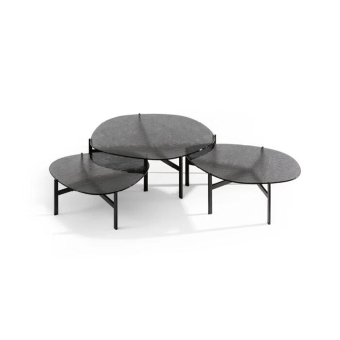 Flac is the name of the new collection of coffee tables designed by Fabrice Berrux for Bonaldo, available in three heights and three diameters (Flac low, Flac medium, Flac high). The characterizing element is the fused and tempered glass top which gives the effect of the surface of water: the top floats on a slender metal base which almost appears to be the mounting for a precious stone. The different heights at which the tables are offered allow the creation of interesting compositions, characterized by a subtle interplay of superimpositions which highlight different shades of colour in the intersection of the glass. In the medium and low versions, the top is also available in wood, ceramic and marble, for a mix & match of materials that make Flac a versatile and perfect element for every style. The metal base features an cross-joint between the legs, an element of craftsmanship that enhances the lightweight design of the product.