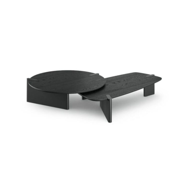 The Flatiron coffee tables by Mauro Lipparini explore the concept of fluidity of lines. The design fits into the architectural language used by this family of tables and desks in which the softness of the shapes is reworked with expressive coherence: the legs, consisting of two vertical panels, are arranged asymmetrically, amplifying the relationship between aesthetics and function. The shape of the top adds dynamism to the structure, giving the table a fluid movement that enhances its geometric purity. The choice of proportions, together with the simplicity of the volumes, guarantees a balance that enhances the spatial composition. The versatility of the collection is expressed through the possibility of using the tables in pairs, creating configurations that either enter into dialogue with the surrounding environment, or which act individually, where each element takes on an independent sculptural value. Available in two heights and with round or trapezoidal tops, the Flatiron coffee tables adapt to a wide variety of different design scenarios, shaping the space in an entirely natural way.