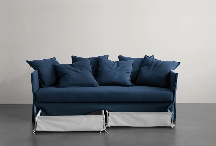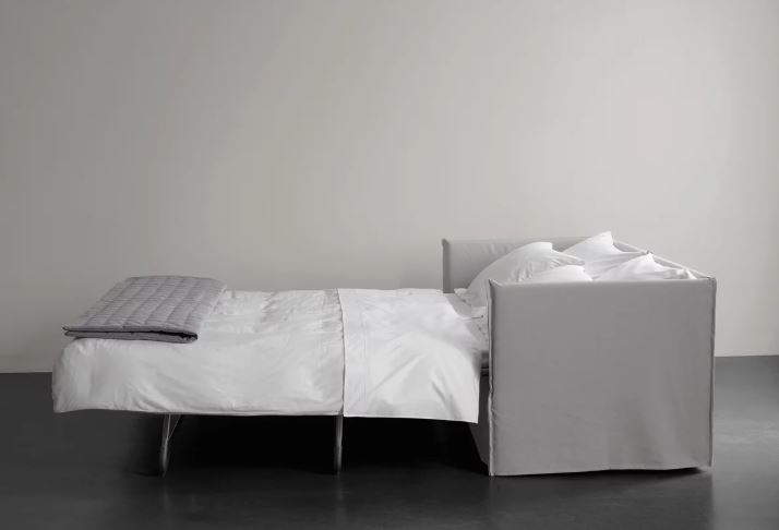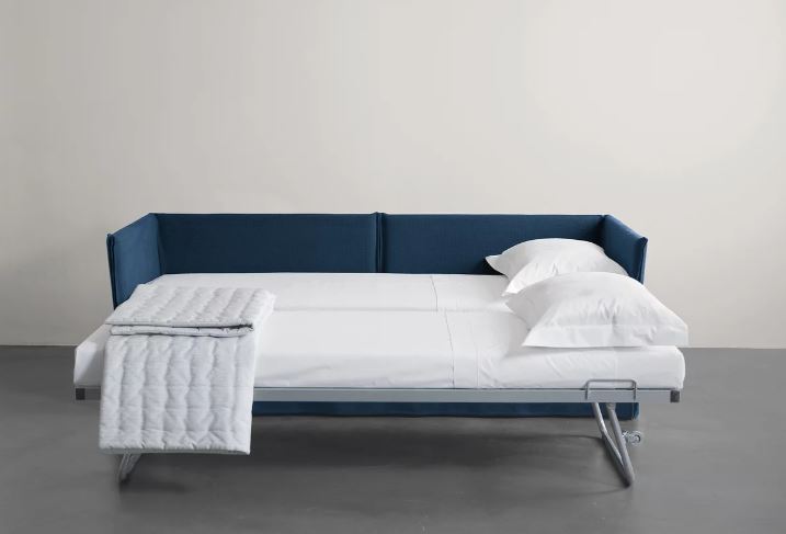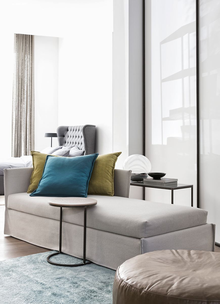 Versatile elements for living spaces or bedrooms that celebrate essential form, ideal for summer residences or guest accommodation, while creating relaxation zones that are simultaneously sophisticated and effortlessly informal. Compact dimensions and clean lines, enhanced by soft covers enriched with cushions, allow these sofa beds to complement any interior style, while the various elements offer exceptional compositional flexibility.