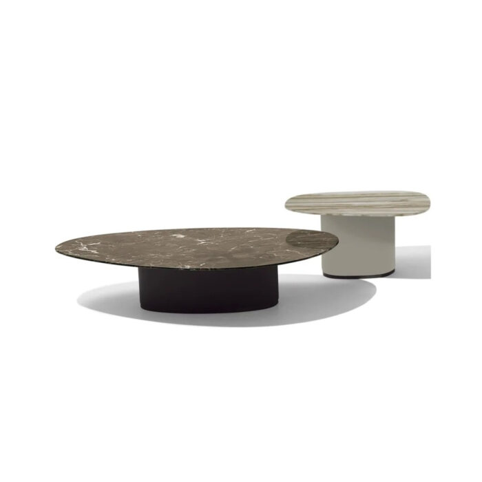 A pebble is a surface on which a world of images come to life. Galet is a low table with an irregular shape of the top, that can be in different precious materials, such as the special shiny handmade lacquer having a shaded and striped effect.