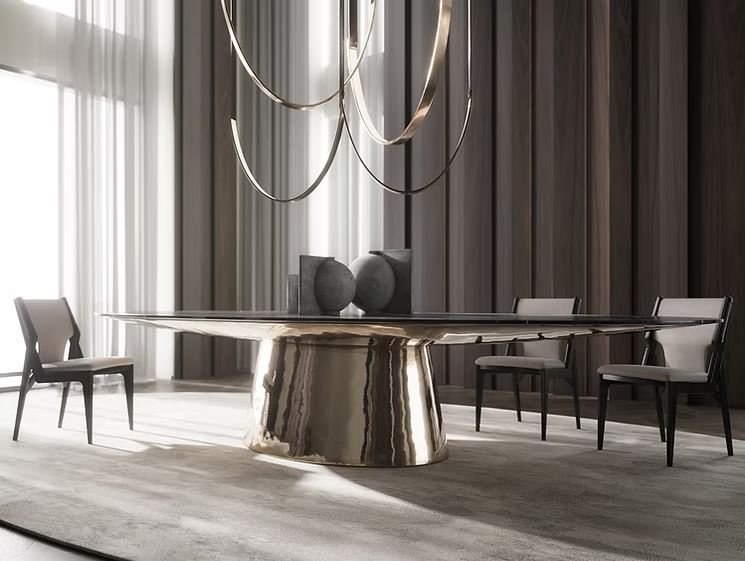 Metal details enhance its lines and particular attention is paid to the hand-crafted finishes. The overall result is pleasant comfort, accommodating all postures. The Hergon concept is based on a commitment to transforming the identity of the typically rigid backrest, making it truly high-performance and welcoming.
