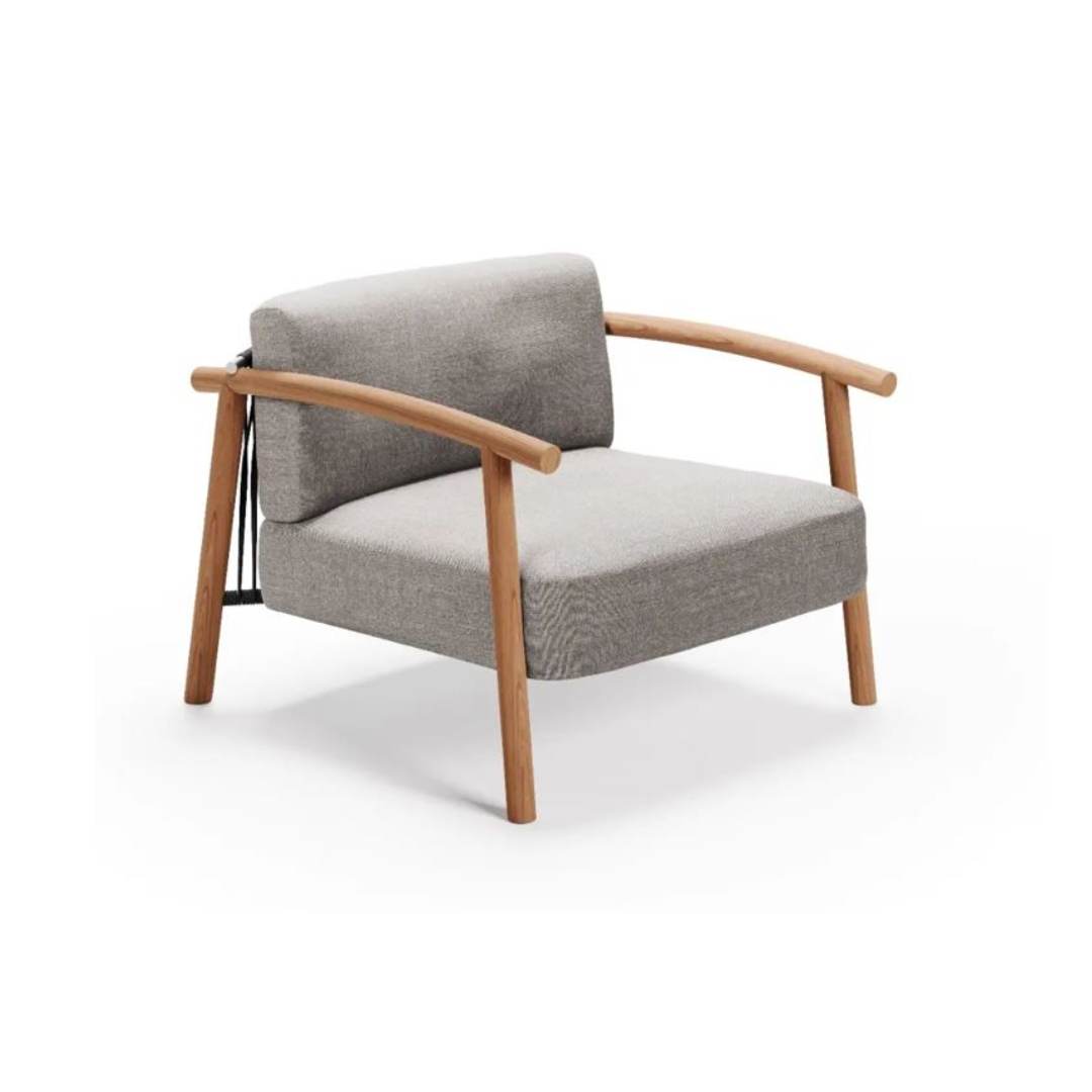 An object that evokes nature and open space, an armchair that conveys a sense of lightness and naturalness thanks to a wooden structure, a measured but distinctive character.