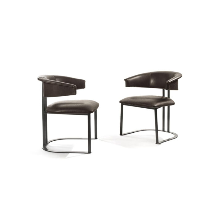 Kyo is an armchair that interprets the history of design in an original way. Curved, enveloping forms accompany a structure with metal elements with an antiqued brushed bronzed effect. The characteristic horseshoe base supports a series of slender metal profiles, connected to the soft, enveloping padding of the seat and backrest. The result is an elegant, comfortable, essential and timeless chair.