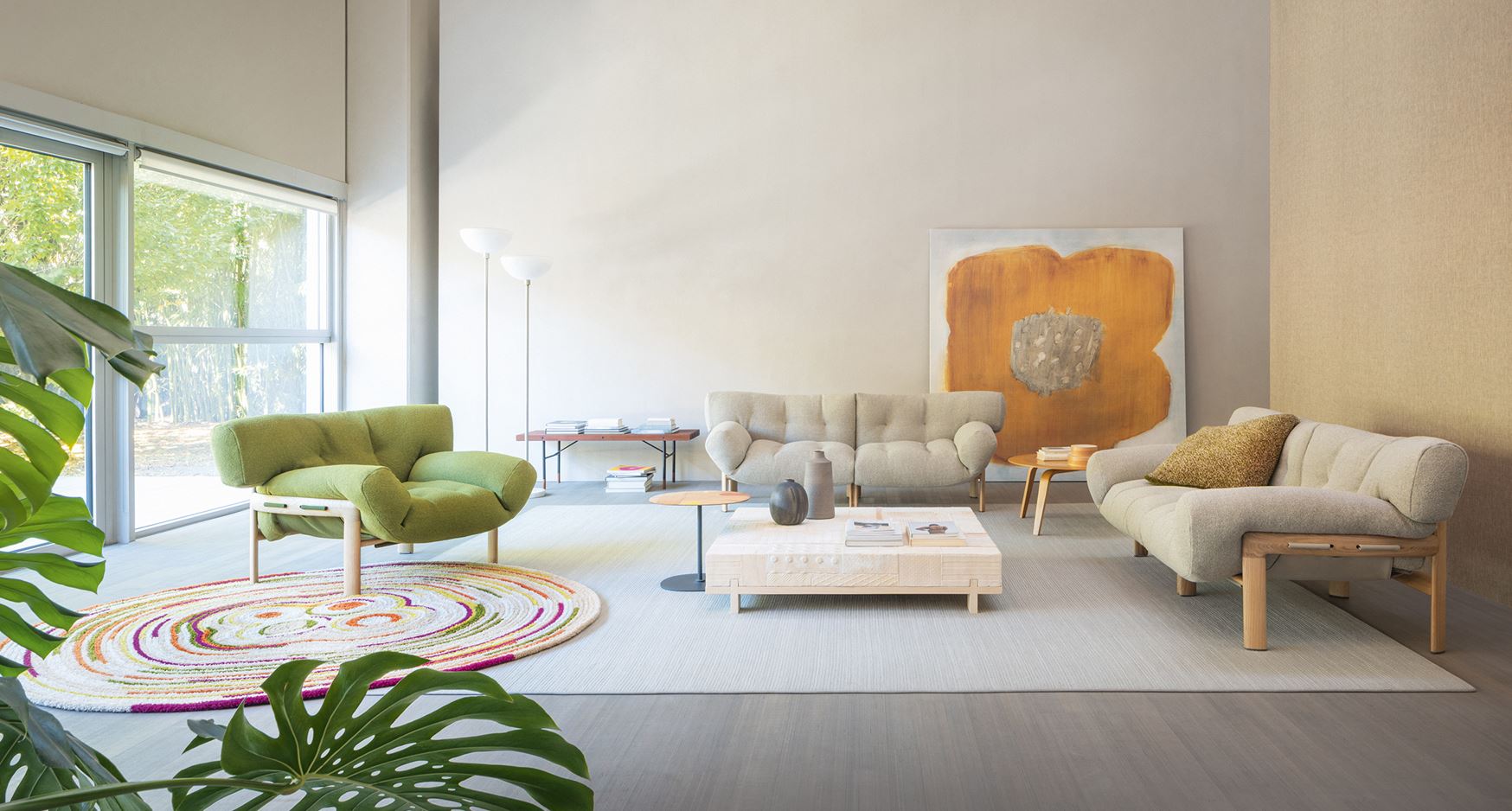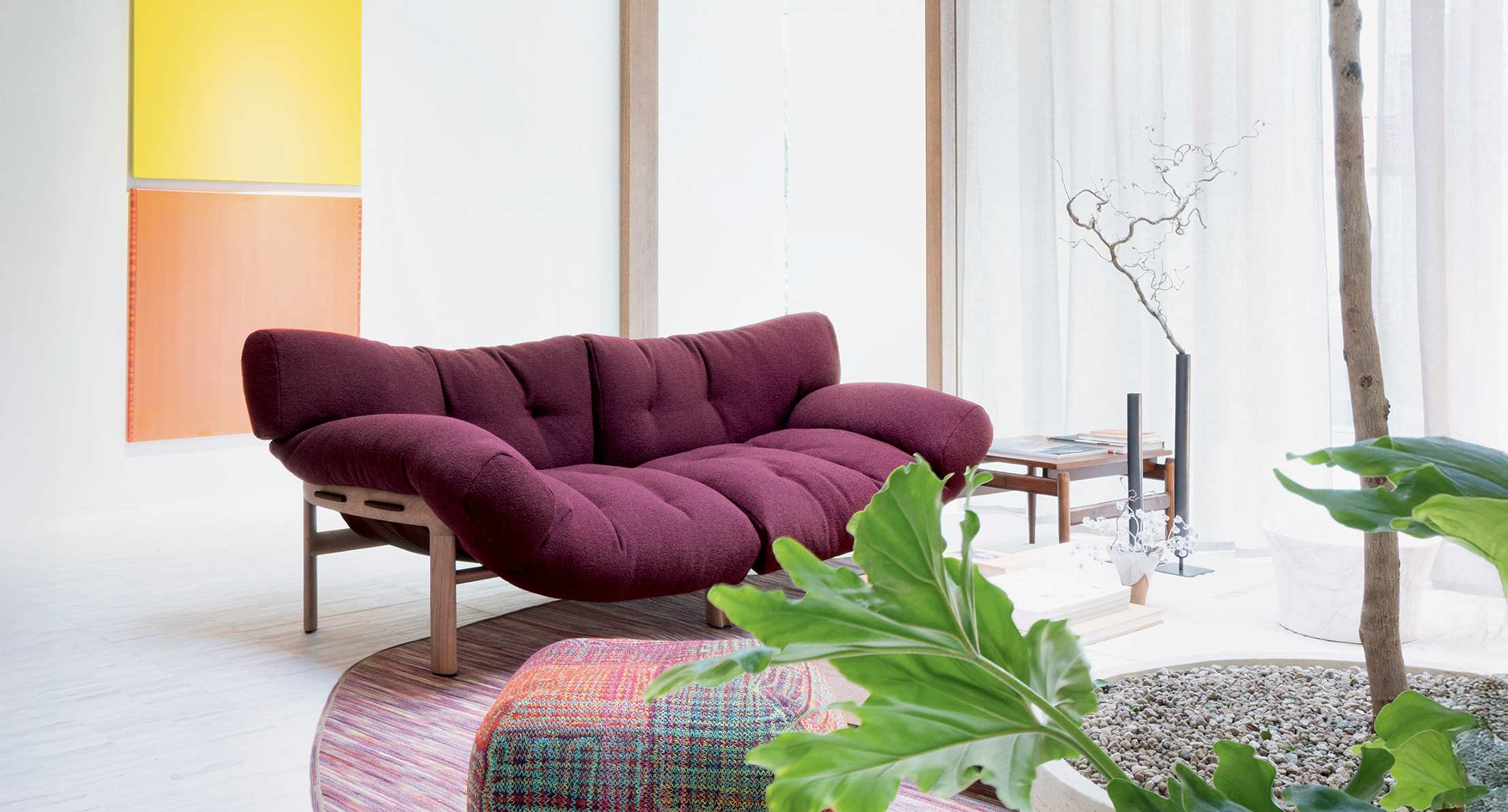 Two-seater sofa, re-edition of an original design from the 1970s.