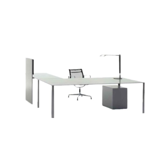 Jean Nouvel offers up a fresh take on the Less series, using new materials and employing sophisticated construction techniques to create the LessLess tables. Made entirely from aluminium, the pieces represent a modern vision of the contemporary office space. Abstract, monolithic, lightweight and sleek, the modular LessLess tables are available in different sizes (rectangular, square or L-shaped), with auxiliary shelf and structural panel for monitor support. The product of extensive research and development with a focus on attention to detail in both production and aesthetics, LessLess is the perfect solution for executive areas and key company spaces.