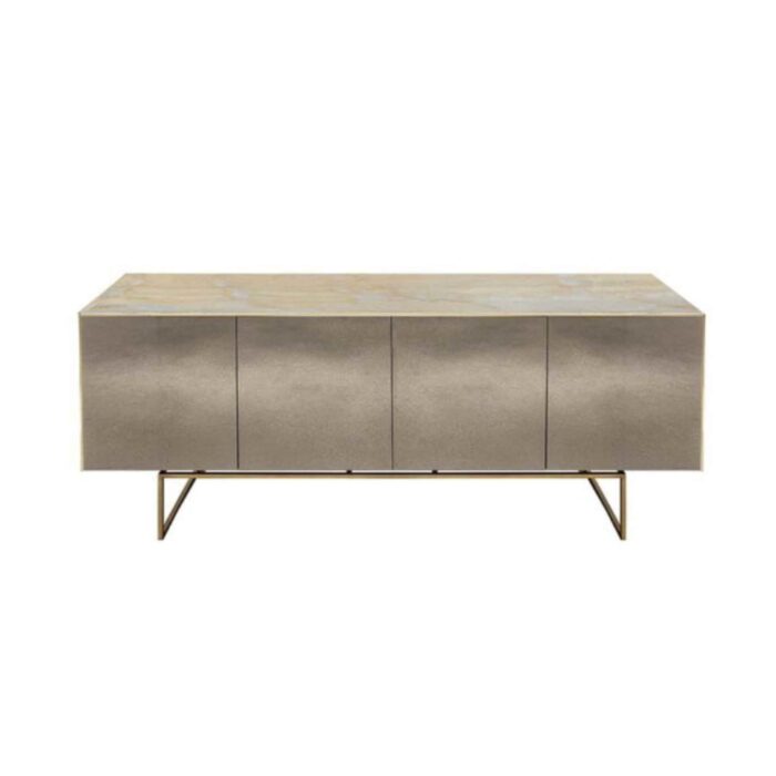 Magda is a new collection of sideboards that combines the material aspect and the soft grains of the marble effect ceramic with the precious and fascinating shades of the Sovet’s mirrors.