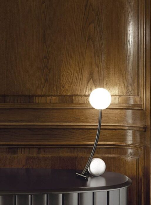 The elimination of the superfluous distinguishes the Materica table lamp, a sculpture object that captures a fleeting intuition, the result of free expression. A mildly shaped steel tube ends with a light bulb, emphasizing the line of the curve and enhancing the refined simplicity of the whole