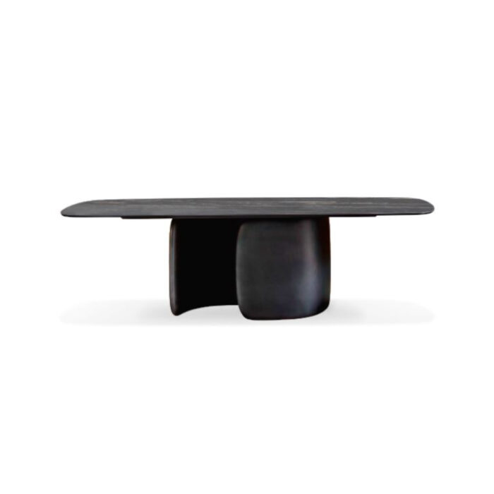 Mellow is a fixed table, characterised by soft, curvilinear forms, imposing and sculptural, as its name indicates, an English adjective that