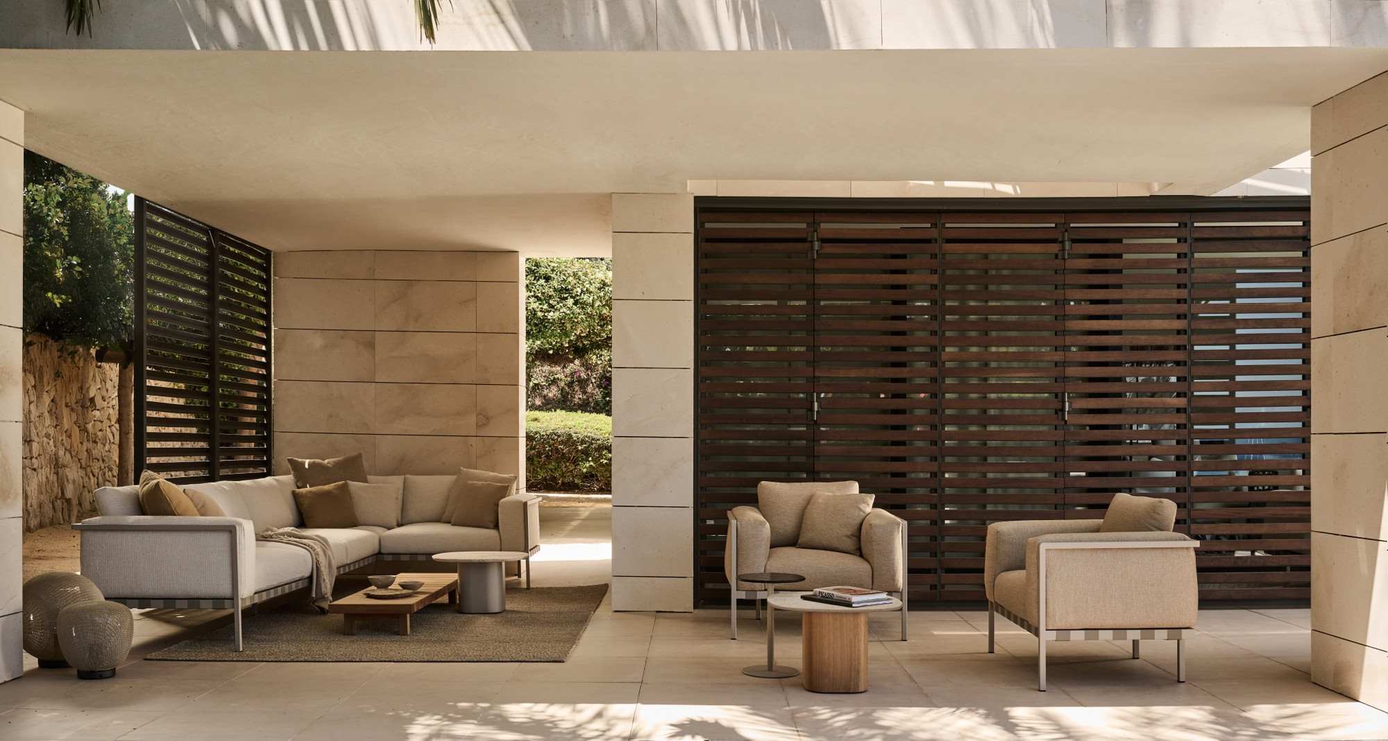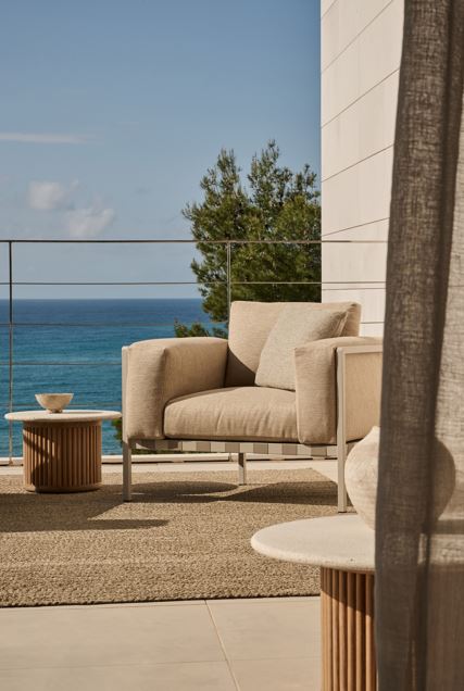 A subtle frame with curved armrests contrasts beautifully with the volume of the cushions, supported by a weave of wide textile straps. Timeless and elegant, the Natal Alu armchair looks great on any patio. The aluminium frame is powder coated with ultra-durable, UV- and scratch resistant textured lacquer which provides a beautiful matte look. Special attention has been paid to the outdoor cushions, which have a ventilating, water-repellent filling, so they can easily handle a sudden downpour. The seams have an extra inside cover and the thread used to stitch the seams, swells when wet to further prevent water from penetrating. With two different frame colours and over 100 luxurious outdoor fabrics to choose from, the possibilities are endless