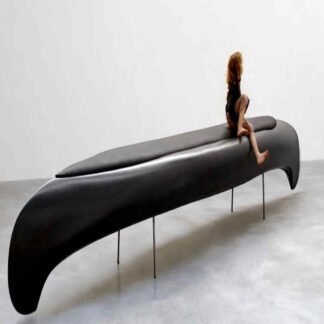 Case with oak veneered wooden structure 30 mm. th., natural or wengé finish. Closed extralight clear glass top. Available in the middle room or wall free standing versions. The base can be also a useful case with openable door.