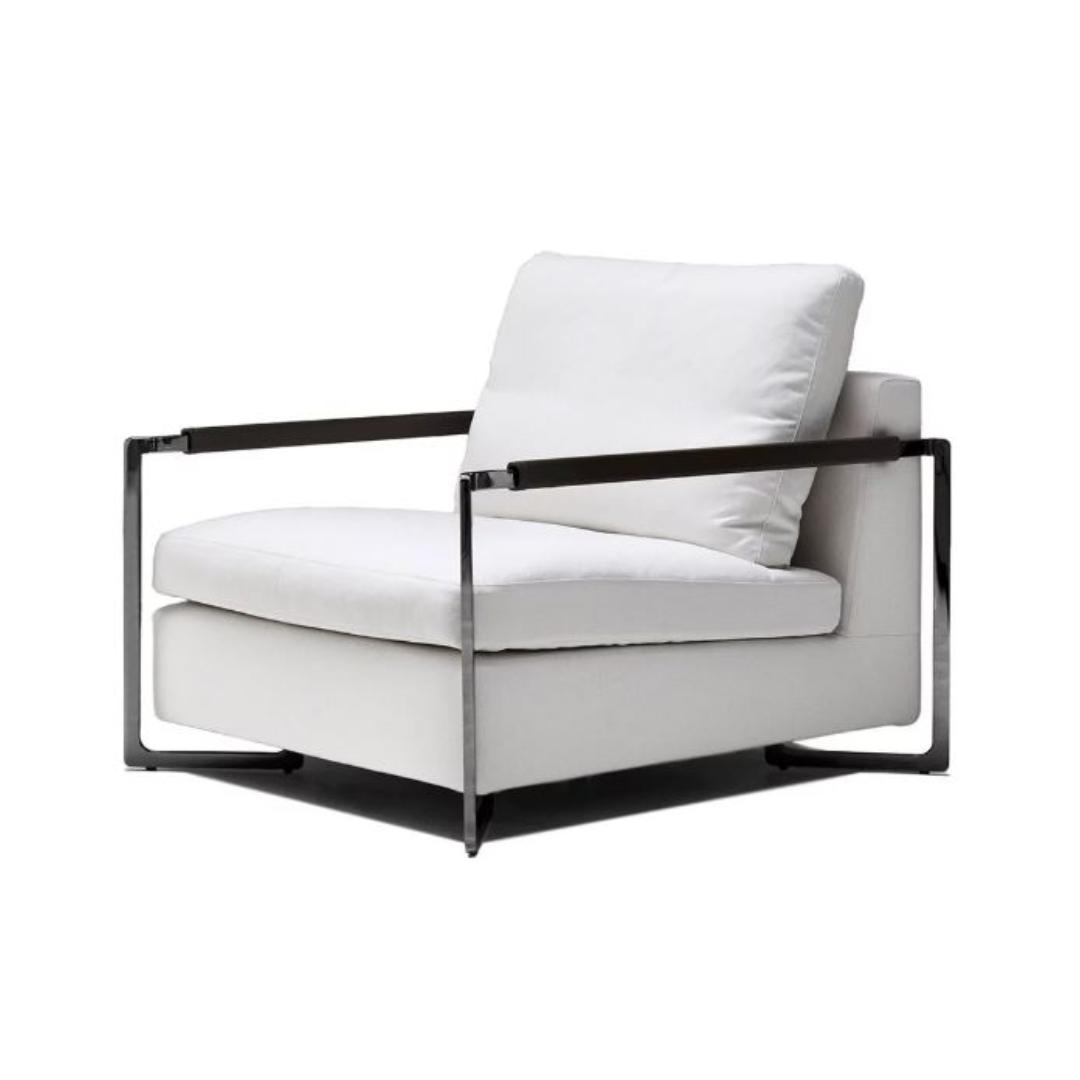 No Logo Light exhibits a double soul, both masculine and feminine, to fit into the coziest family homes and into the most rigorous of public spaces. Its most striking features are the austerity of the steel frame and the unexpectedly comfortable seat cushion. In production since 2005, No Logo Light places itself squarely at the center of everyday life always drawing attention to itself, yet with the utmost discretion. Fully removable covers.