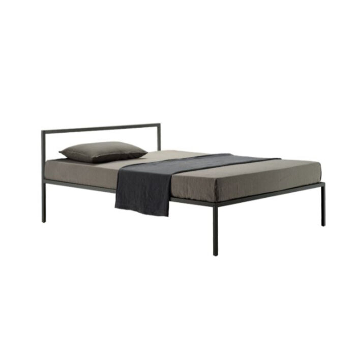 Beds. Demountable steel frame painted in the shade of talc or black. Springing in bent beech strips, with stiffness adjusters. Version 1707 has headboard cushions with goose down – 100% pure material, with polyurethane insert. Removable fabric or leather cover (only for model 1707). Upon request the bed size for 210 cm. long mattress is also available.