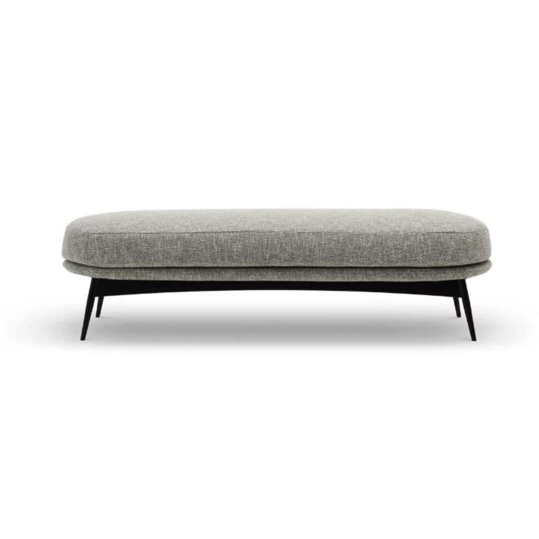 The seating collection “Oltremare” designed by Antonio Marras and produced in collaboration with Saba, stems from a far-away past and place, full of history, recollection, memories overflowing with suggestions and visions. And this is how Antonio Marras presented an object so dear to him that he defines a sacred-idol, that narrates of his land, of his sea, but mostly, of his story. We named it Oltremare, because all things have a soul and every soul has a name. Oltremare encloses within its inlets the classic and the modern. The curve is a line that can be tamed: it forms a wave, a fold, it creates a place but it also offers an escape route. In our utopian world we investigated the relationship between the curved line and the act of seating, asymmetric shapes that become backrests and sink into extremely comfortable seats pushing past the rectangular schemes so dear to the sober lines of designing sofas. The asymmetric curves that enclose it are the inspirations for the Oltremare armchair that completes the collection alongside a padded bench. A comfortable nest suspended on a slim varnished metal base, whose essential lines render, by contract, the armchair’s silhouette even more interesting. Oltremare is a seating system that, even though winks at the past, it communicates a strong contemporary soul and is suitable by nature to various interpretations. Fully removable covers.