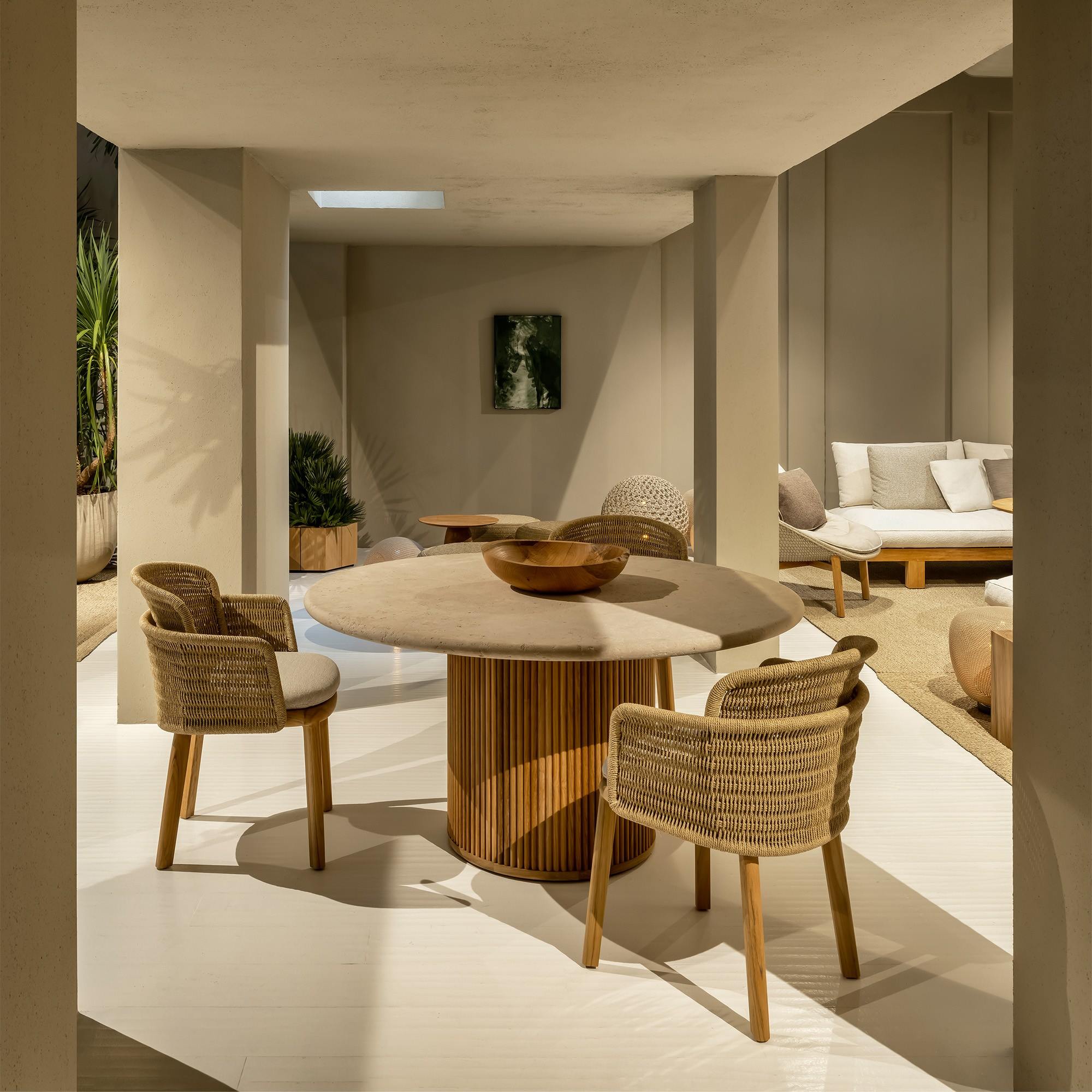 OTTO draws inspiration from a rhythmic ‘ribbon’ pattern, often found in Italian bar counters from the 1940s. Using merely one simple element, an endless and intriguing surface is created, referencing ancient architectural pillars with their characteristic fluted pattern. This durable, timeless design significantly reduces the waste of precious teak. The new OTTO low dining table reinterprets the original design at a lower height, making it perfect for relaxed, casual outdoor gatherings.