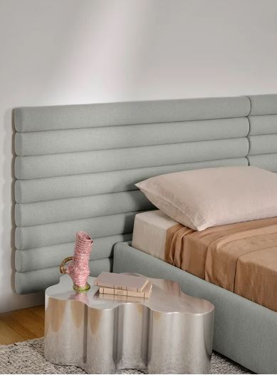Inspired by the armchair and bench of the same name, the Pan Flute headboard draws on the wall like a musical score. Conceived as a boiserie, its circular volumes invite you to customize the wall with original textures.