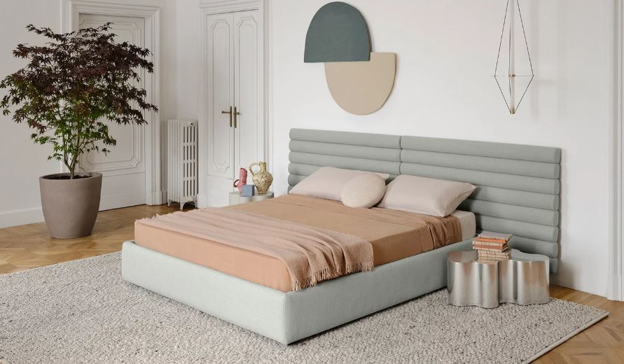 Perfect for contract and residential environments, it can be purchased individually or accompanied by its sommier. Available in two sizes, it embraces both small bed frames and large mattresses.