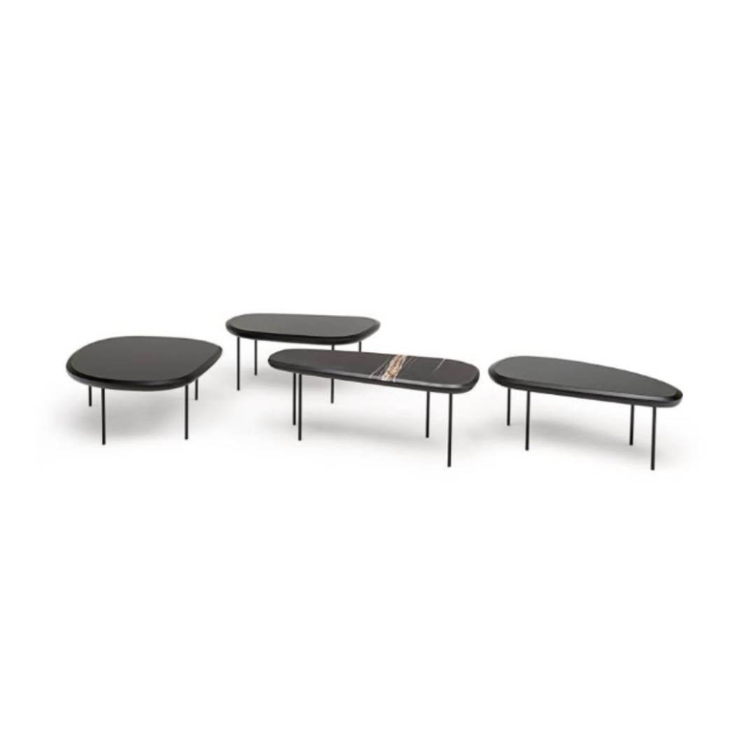 Family of small coffee tables defined by light and delicate silhouette, like stones, that privileges now a rounded layout or an elongated one. The concept is that nature never repeats itself, creating something different every time