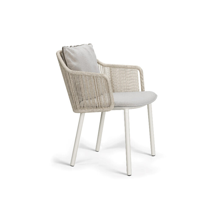 The lightness of the design and choice of warm teak or sleek, powder-coated aluminium legs, means the Senja armchair is an elegant fit with a variety of tables and outdoor settings.