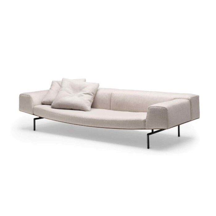 Tribute to the essence of elegance, the new lenticular sofa Sumo inspires dynamism, character and energy through the space with its slender and unique silhouette, rigorous yet fluid