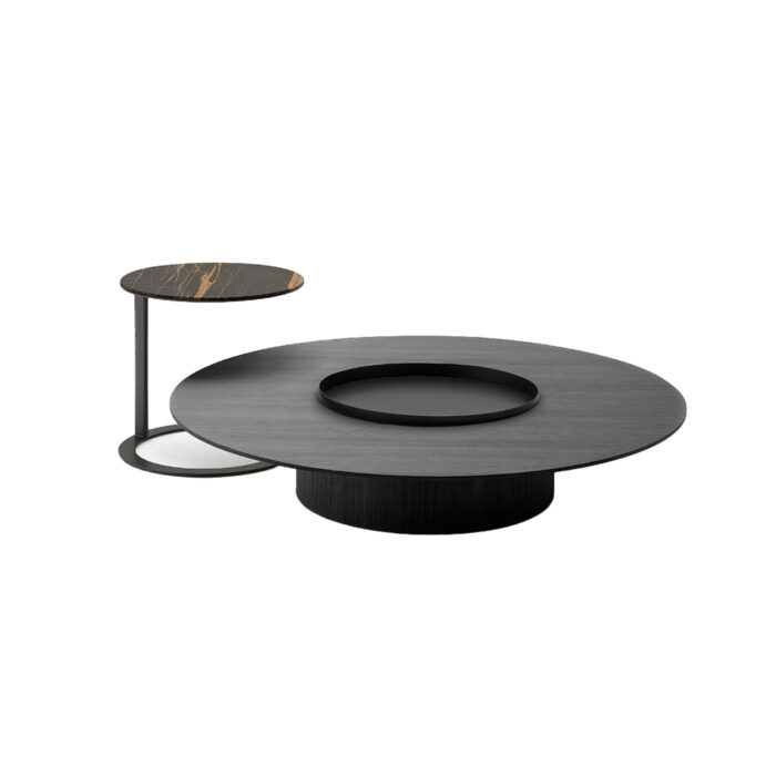 The expressive strength of the circle and the appeal of the materials dominate in the Tethys table, made up of several elements that can be combined together.