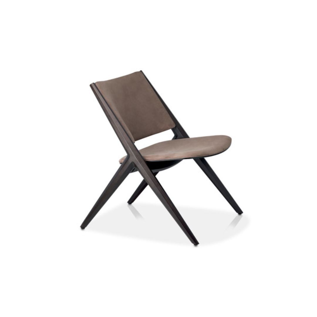 Lounge chair with ash wood or Canaletto walnut frame and seat and backrest padded in fire retardant polyurethane foam. Finishes and covers as per collection.
