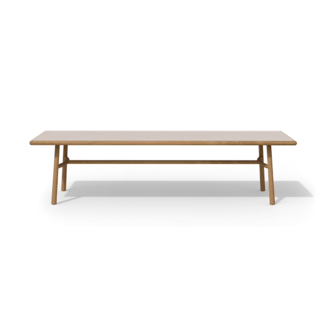 Ukiyo exudes design authenticity inspired by Japanese architecture, and this aesthetic is visible throughout the design of the Ukiyo dining table. The ceramic tabletop and teak frame offer perfect contrast and can be effortlessly paired with any other collection, whether your choice is classic teak or something bolder.