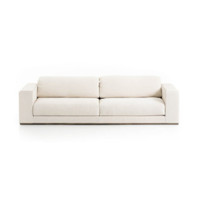 Range of modular upholstered furniture with saddle leather or nubuck detail. Structure available plain or with “baguette” stitching