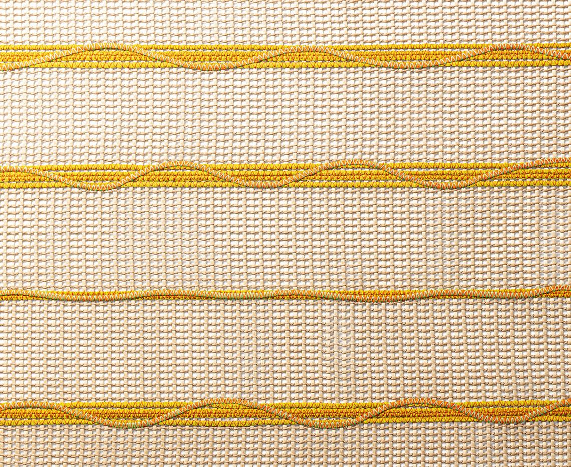 One colour can be chosen for the backing, while up to two colours can be chosen for the décor: one for the straight braids, one for the sinuous ones.